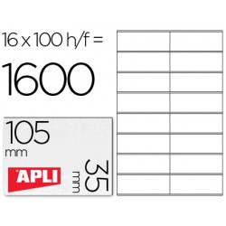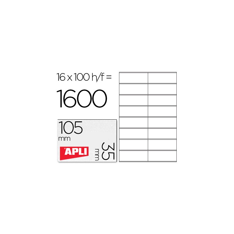 Etiquetas para impresoras Inkjet, Láser y Fotocopiadoras.Medidas: 105 x 35Cantidad de etiquetas : 1600Cantos: RectosColor: BlancoForma: RectangularTipo de adhesivo: PermanenteTamaño de la hoja: Din A4Nº de hojas por pack: 100 HojasLas etiquetas autoadhesivas blancas para impresoras Inkjet, Láser y Fotocopiadora se caracterizan por su versatilidad, flexibilidad y sencillez de uso.