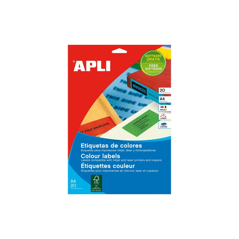 Etiquetas amarillas cantos rectos tamaño 210,0 x 297,0 mm con adhesivo permanente. Pack con 20 hojas (20 etiquetas). Las etiquetas de colores son ideales para destacar tu información en un sobre de envío, paquete u objeto. Excelente calidad de impresión en impresoras inkjet, láser o fotocopiadoras.