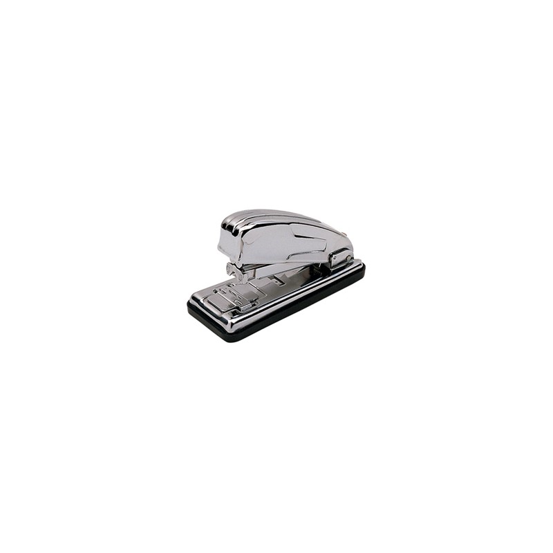 Metálica cromada. Clásica y robusta. Con capacidad de carga de 70 grapas nº 22/6 y 24/6. Longitud de grapado a 72 mm del borde de la hoja. Con base plástica antideslizante. Con cargador doble guía antiatascos. Carga frontal. Incorpora el grapado PGT (Paper Grip Tecnology) para un grapado siempre perfecto. Longitud de la base: 125 mm. Medidas: 55 x 76 x 125 mm.
