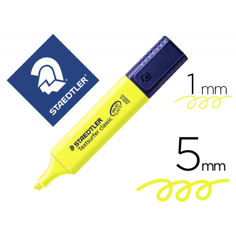 MARCADOR FLUOR STAEDTLER 364 TEXTSURFER CLASSIC AMARILLO PUNTA BISELADA TRAZO 1-5 MM