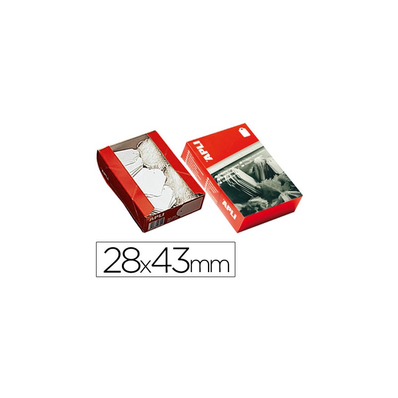 Etiquetas colgantes blancas tamaño 28 x 43 mm. Cada caja contiene 500 etiquetas con hilo. Estas etiquetas están fabricadas en cartulina de 200 g/m², con un agujero preperforado e incluyen, cada una, un hilo de poliéster blanco ajustable a la medida deseada. Aptas para escritura manual con lápiz, bolígrafo (incluso de tinta gel), rotuladores, permanentes, tinta de sello, etc. Ideales para usar en regalos, detalles de bodas, fiestas, álbumes, productos artesanales, folletos, almacenamiento, poner precios, tintorerías, etc.
