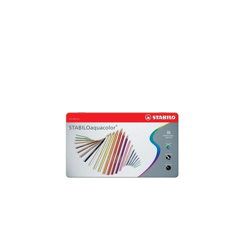 LAPICES DE COLORES ACUARELABLES STABILO AQUACOLOR COLORES SURTIDOS E INTENSOS PUNTA DE 208 MM CAJA DE METAL DE 36 UDS