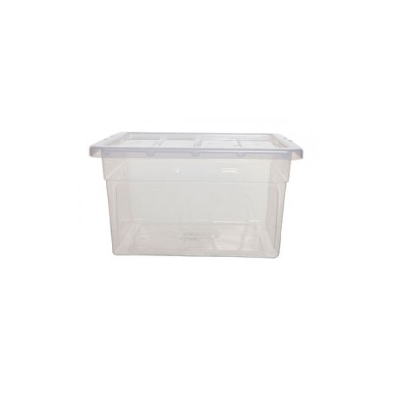 Caja de almacenaje Archivo 2000 de 32 litros de capacidad con tapa. Fabricada en polipropileno copolímero de gran calidad y resistencia. Sólida y reforzada para un almacenamiento perfecto. Gran protección frente al polvo y la humedad. Encajable sin tapa para optimizar el espacio y el transporte y apilable con tapa de forma estable gracias a las hendiduras en la parte superior. Color cristal transparente. Medidas exteriores: 36x42x30 cm. Fabricado en España.