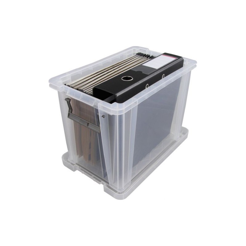 Caja de almacenaje Archivo 2000 de 20 litros de capacidad con tapa. Fabricada en polipropileno copolímero de gran calidad y resistencia. Sólida y reforzada para un almacenamiento perfecto. Gran protección frente al polvo y la humedad. Encajable sin tapa para optimizar el espacio y el transporte y apilable con tapa de forma estable gracias a las hendiduras en la parte superior. Color cristal transparente. Medidas exteriores: 28x40x26 cm. Fabricado en España .