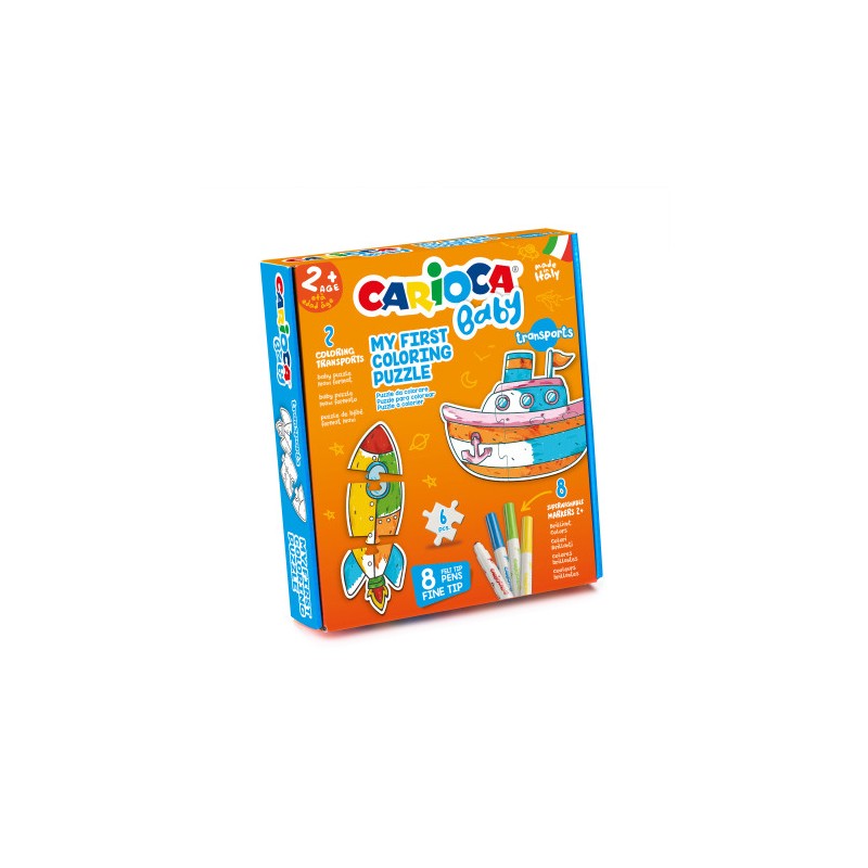 PACK DE MANUALIDADES CARIOCA BABY COLORING PUZZLE TRANSPORTES CONTIENE 2 DIBUJOS PARA COLOREAR + 8 ROTULADORES