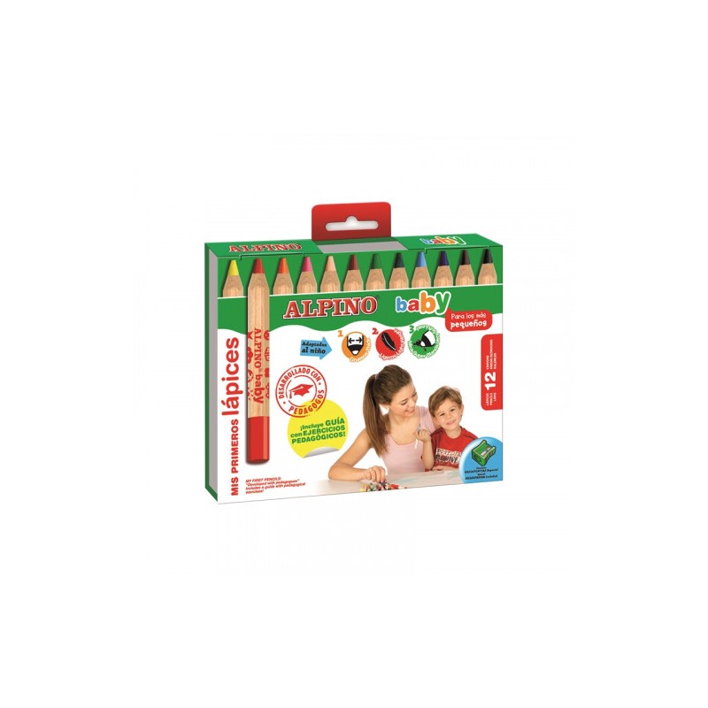 Estuche de 12 lápices de colores gruesos y mina blanda. Diseñados especialmente para los más pequeños, ideales para aprender a controlar el trazo. Contiene sacapuntas especial y una guía pedagógica de expresión gráfica para disfrutar y aprender al máximo.