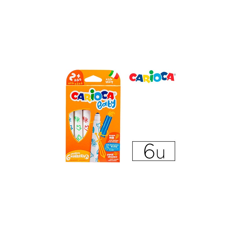Carioca Marker 2+. Tipo de punta: Extra-grueso, Colores de escritura: Multicolor, Tipo de punta: Punta redonda. Cantidad por paquete: 6 pieza(s), Tipo de embalaje: Caja de cartón. Ancho de la caja principal: 32,5 cm, Longitud de la caja: 40,5 cm, Alto de la caja principal: 31,5 cm