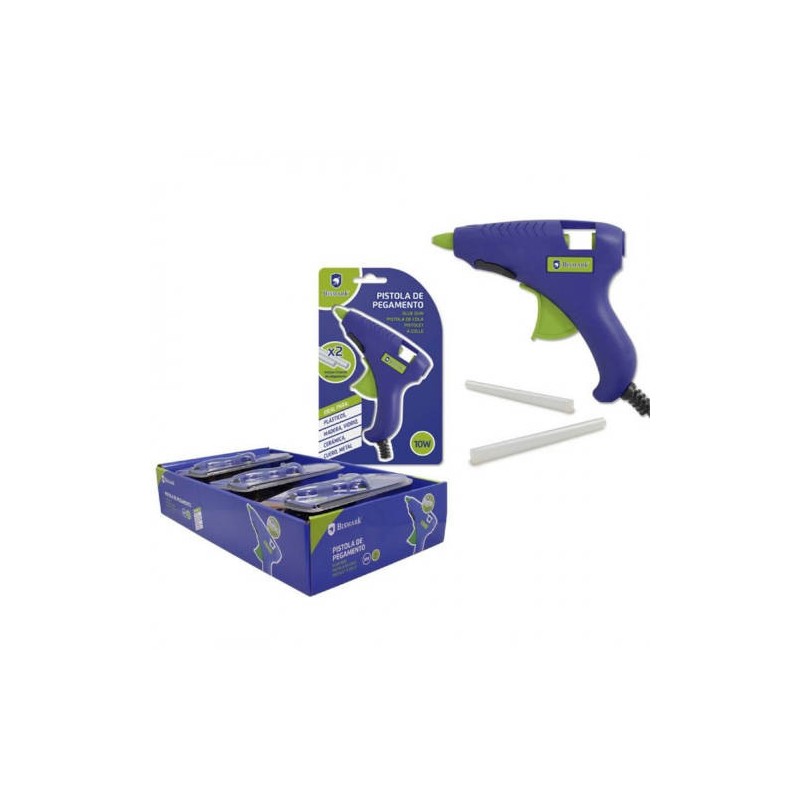 La pistola termo-fusible funde la barra de cola y la transforma en adhesivo líquido. Perfecta para pequeñas reparaciones, trabajos manuales, bricolaje, etc. Permite gran precisión y se apta para diferentes tipos de materiales: Plástico, cerámica, piel, textiles, madera, etc.