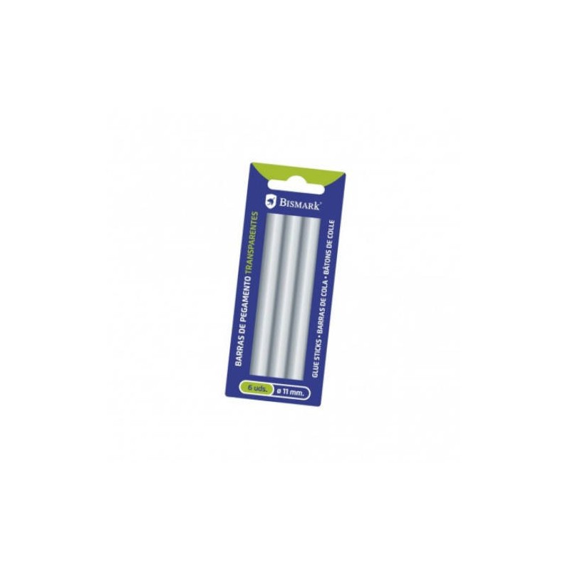 BLISTER 6 BARRAS DE PEGAMENTO SILICONA TRANSPARENTE 11,2 X 150 MM. BISMARK- Producto: Blister 6 Barras de pegamento- Tipo de pegamento: Silicona- Colores: Transparente- Medidas: 11.2 x 150 mm