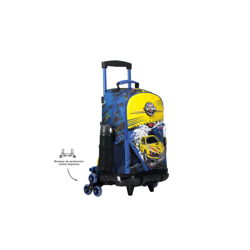¡Prepárate para sentir la velocidad! En esta pista de carreras todo vale para ser el primero. Esta mochila infantil de ruedas de talla grande tiene dos compartimentos principales con cremallera, organizadores internos, e identificador de nombre y curso en la parte posterior. Avanza a la meta y siente la adrenalina de Velocity Collection. Capacidad 34.8 litros.