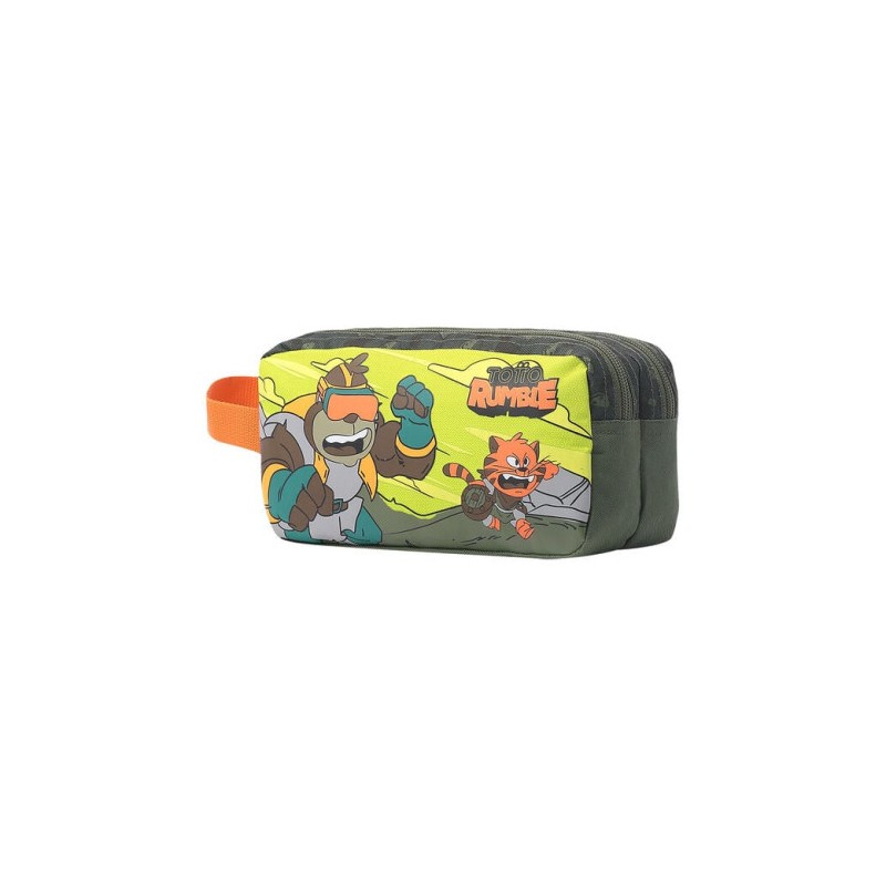 Divertido y práctico estuche inspirado en el mundo de los cartoons. Permite a los pequeños llevar todo lo necesario al cole sin queles falte espacio gracias a sus dos compartimentos. Tiene un identificador para el nombre y el curso en la parte trasera, cierre en cremallera, y un asa lateral para un manejo más fácil y práctico.