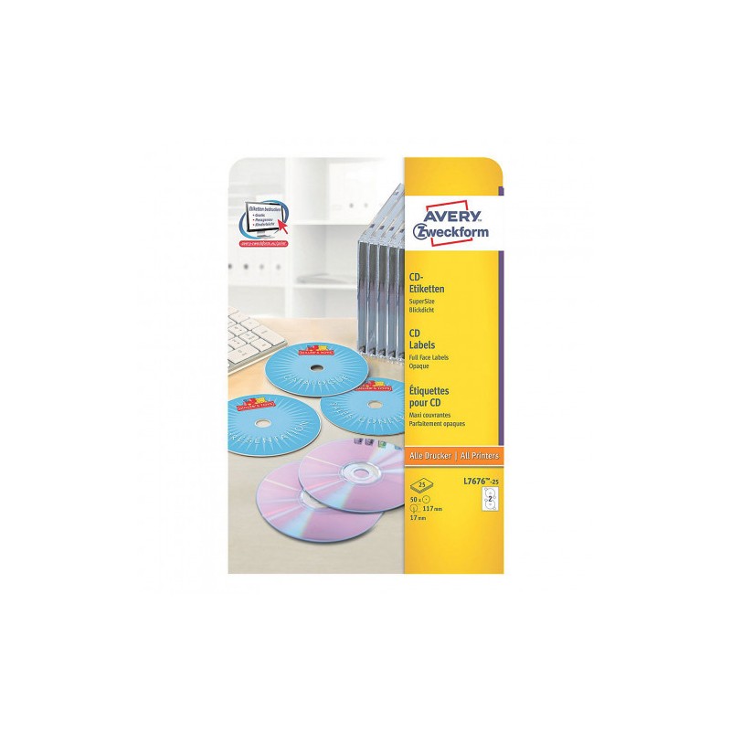 ¿Tienes que enviar un CD con información a unos clientes? Impresionales desde el momento que abren el sobre creando tu propias etiquetas para CD. Escribir el contenido del CD con un rotulador no hará justícia a tu duro trabajo. Pero si lo hará una etiqueta para CD impresa. Las etiquetas opacas cubren completamente el texto que hay debajo de la etiqueta, con lo cual, todo lo que los clientes ven son los contenidos actuales. Puedes añadir texto, el logo de tu compañía y otros gráficos si usas Avery DesignPro®. Tiene más de 800 plantillas para etiquetas de CD para que puedas crear diseños geniales en un momento.- Etiquetas para CD con un diseño de gran tamaño de 117mm de superficie, proporcionando más espacio para añadir tu toque personal- Disponibles en material opaco para cubrir completamente etiquetas viejas- ''Alas'' prácticas en todas las etiquetas de CD y DVD que permiten una aplicación centrada y un fácil manejo ‘No Touch™’- Crea tus etiquetas usando el software de DesignPro® que incluye más de 800 plantillas pre-diseñadas para etiquetas para CD/DVD