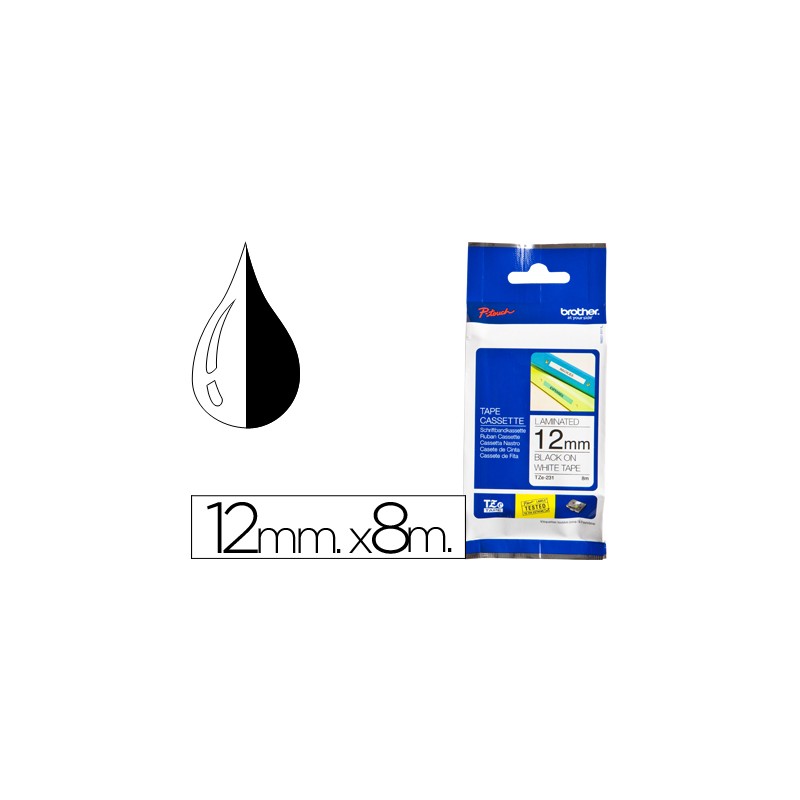 CINTA DE ROTULAR BROTHER TZE-231 LAMINADA NEGRO / BLANCO 12 MM X 8 MT