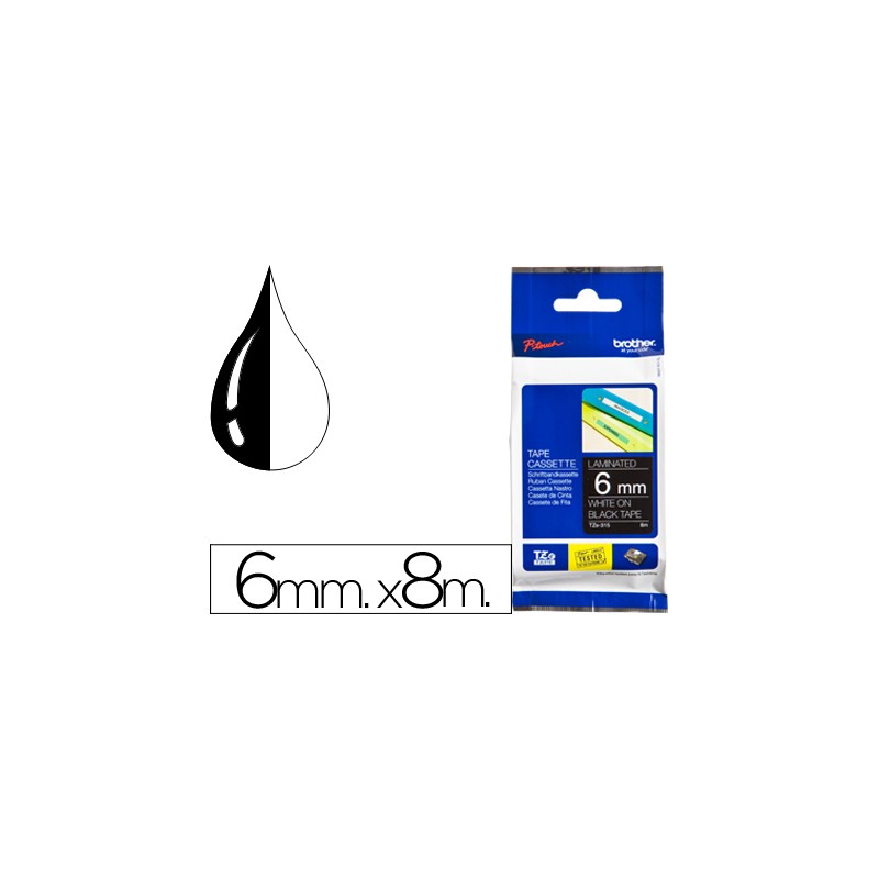 CINTA DE ROTULAR BROTHER TZE-315 LAMINADA NEGRO / BLANCO 6 MM X 8 MT