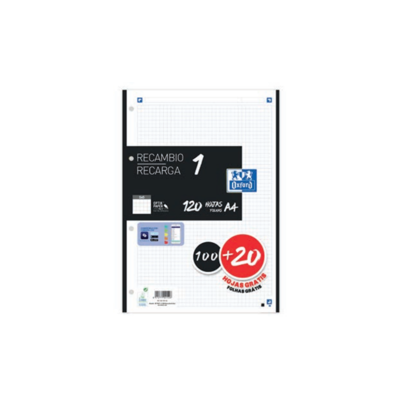 Recambio OXFORD retractilado en paquete de 100 Hojas con 1 color de banda y 4 taladros de archivo para poder guardar las hojas en un archivador o carpeta de anillas. Ideal para quienes prefieren hojas sueltas y llevar sólo las que necesiten. Compatible con la app gratuita SCRIBZEE que permite organizar, consultar, compartir y acceder a tus notas en cualquier lugar desde tu Smartphone, tablet o PC.