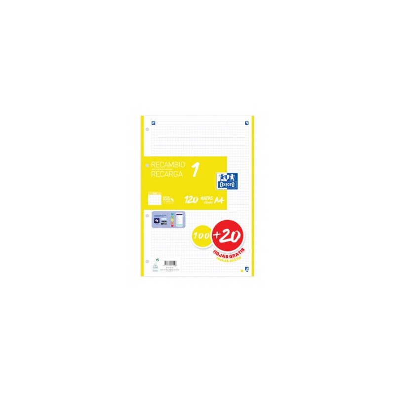 RECAMBIO ENCOLADO CON TAPAS OXFORD DIN A4+ 100+20 H 90 GRS 4 TALADROS CUADRICULA 5 X 5 MM LIMA
