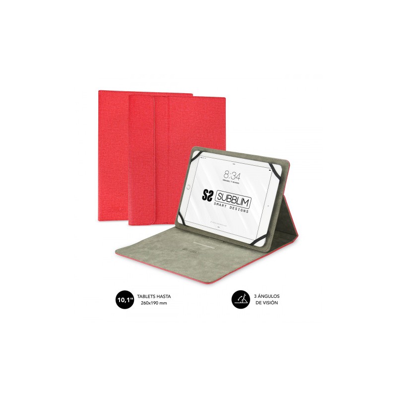 CLEVER STAND CASE, es una funda universal para proteger tu Tablet. Su estilo es moderno y elegante, desarrollado por diseñadores con las preferencias del usuario. El acabado exterior con acabado en tacto Cloth y el exquisito cosido le dan al producto un aspecto de alta calidad.El soporte antideslizante permite colocar la Tablet en varios ángulos de visión. Los puertos de conexión y botones permanecen accesibles incluso cuando su Tablet está en la funda, con grandes aberturas en todos los lados.Cuatro elegantes coloresLa gama de colores más demandada y con mejor acogida por parte del usuario final con un elegante acabado en tacto Cloth.Cierre MagnéticoDisfruta de su cierre magnético que además de elegancia, ofrece una alta seguridad facilitando su transporte.Exclusivo Sistema de SujeciónTiene un sistema único de fijación de tu Tablet en la funda mediante una silicona ultrarresistente que se adapta a las cuatro esquinas de tu dispositivo con una total compatibilidad y sin dañar tu pantalla.