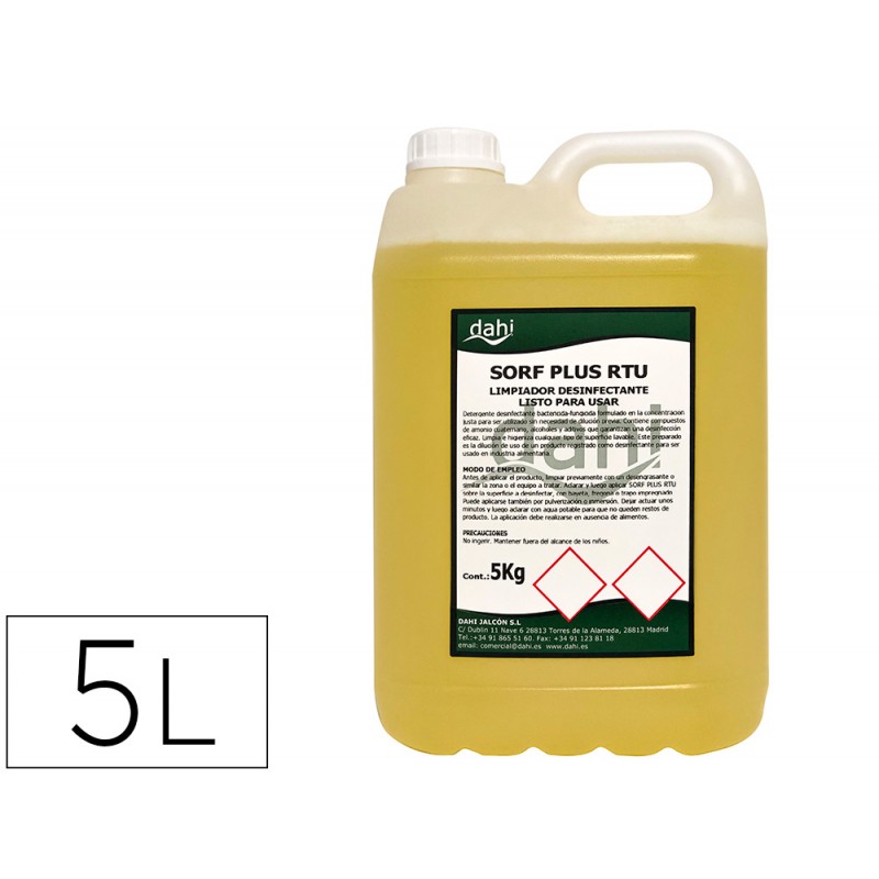 Limpiador general desinfectante con propiedas bactericidas y fungicidas para su uso en industrias e instalaciones donde se manipulen alimentos. Contiene compuestos de amonio cuaternario, alcoholes y aditivos. No necesita dilución previa. Proporciona una desinfección y una eliminación de bacterias y hongos que garantiza la salubridad de las instalaciones. Puede ser aplicado en cualquier superficie lavable. Ideal para la reposición. Garrafa de 5 litros.