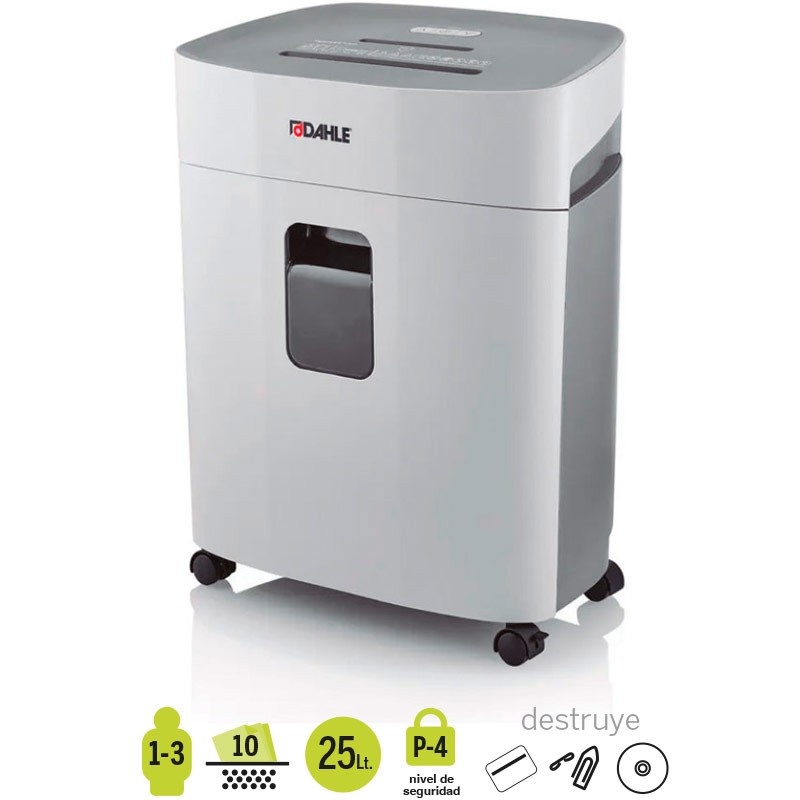 DESTRUCTORA DE DOCUMENTOS DAHLE PAPERSAFE 240 USO COMPARTIDO MANUAL 10 HOJAS CICLO DE TRABAJO 25 MIN PARTICULAS P4 GRAPAS CLIPS TARJETAS Y CDS 25 LITROS
