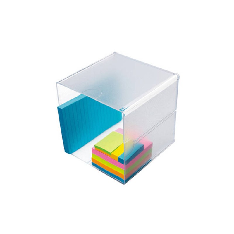 ORGANIZADOR MODULAR HUECO TRANSPARENTE DEFLECTO- Ideal para almacenar CD''s, notas adhesivas y mucho más- El cubo cristalino ofrece una excelente visibilidad del contenido- Apilable / Fijable / Fijable horizontal y verticalmente- Clips metálicos incluidos para sujetar a otros cubos para una solución de almacenamiento a medida.