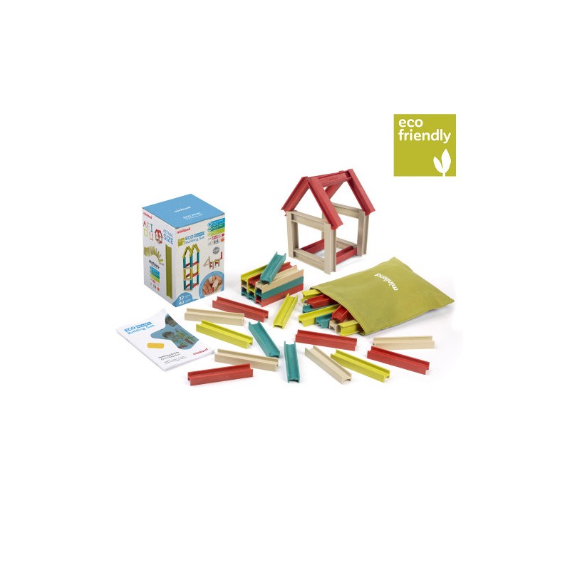 Juego de construcción ideal para estimular la creatividad, la imaginación y el ingenio, potenciando la psicomotricidad fina, la visión espacial, la concentración y la perseverancia. Sus 32 piezas son apilables y también conectables entre sí, lo que permite adaptar el juego al desarrollo evolutivo de cada niño. Incluye una guía con 40 actividades ordenadas según nivel de dificultad, lo que lo hace idóneo para ser utilizado en distintos niveles educativos. Están fabricadas con material eco-friendly que contiene fibras de abeto, y diseñadas para tener una gran durabilidad, resistencia e higiene ¡se pueden incluso lavar en el lavavajillas. Recomendado a partir de 3 años