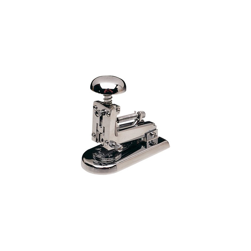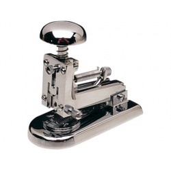 Fabricada en acero cromado. Usa grapas nº 22/6 y 24/6. Longitud del grapado a 50 mm del borde de la hoja. Carga 1 peine (50 grapas). Carga trasera. Fácilmente desmontable, con tornillo antiatasco. Color cromado. Longitud de la base: 103 mm. Medidas: 50 x 100 x 105 mm.