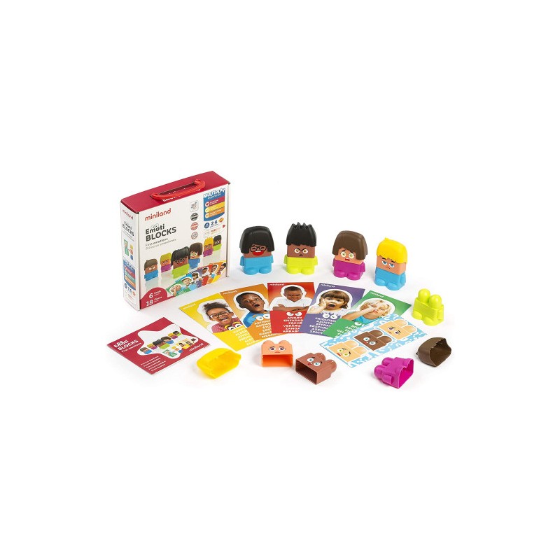 Emotiblocks es una forma muy divertida de familiarizarse con las primeras emociones a través de divertidas actividades de observación y manipulación. Hay mas de 100 combinaciones posibles, está compuesto por 6 personajes con piezas de cabezas y con caras de las diferentes emociones y cuerpos intercambiables, que permiten dotarles de personalidad. El juego se acompaña de fichas de actividades y guía didáctica, muy adecuados para compartir horas de juego y emociones en familia, con amigos o de forma individual.