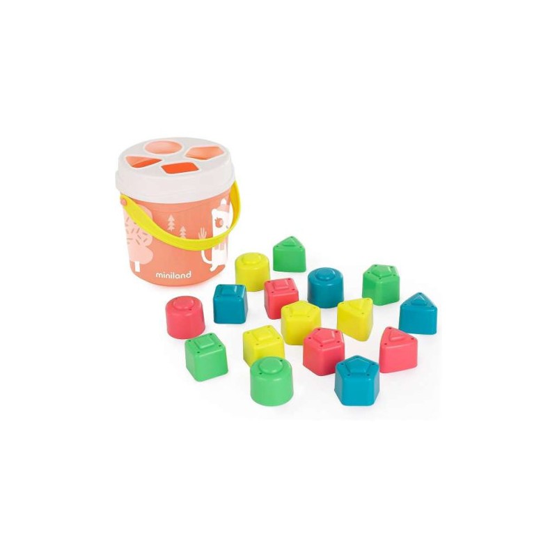Juego de encajes que ayuda a reconocer diferentes formas y colores. Todas las piezas están fabricadas con materiales recdiclados y reciclables, lo que reduce el impacto medio ambiental. Ejercita la CoordinaciónOjo-mano y el razonamiento lógico. Las 16 piezas además de usarse como moldes de arena, disponen de orificios por los que se puede hacer “lluvia” de agua.Todas las piezas se pueden guardar dentro del cubo con asa para facilitar su transporte y almacenamiento.