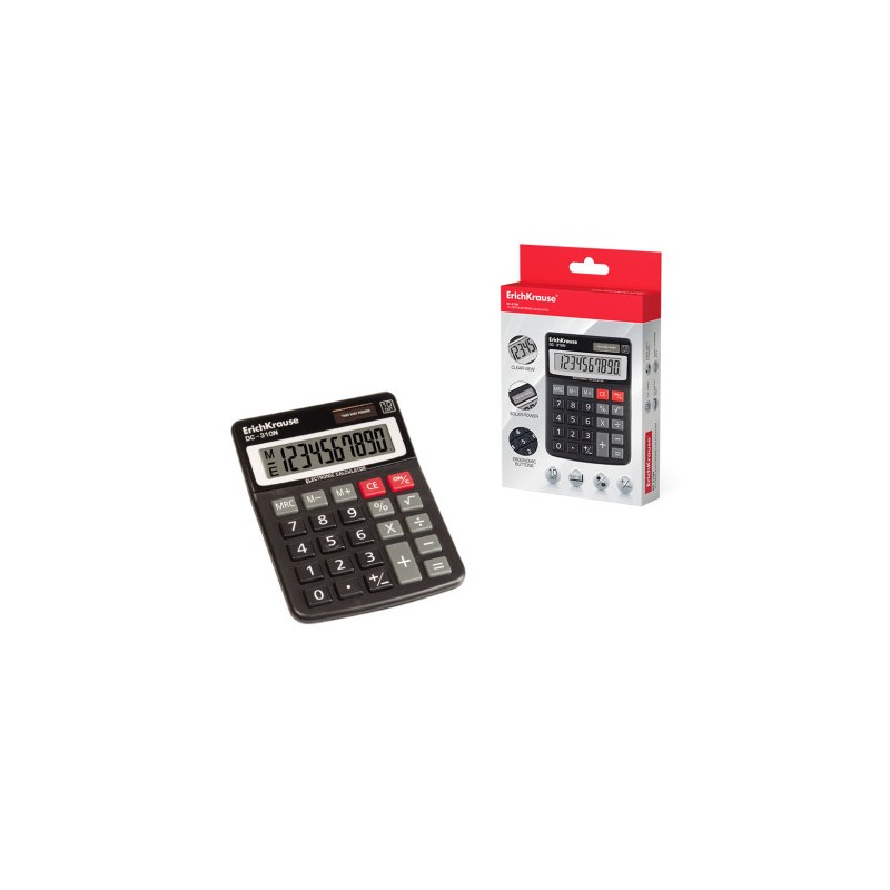 Calculadora electrónica con pantalla LCD de 10 dígitos. Desconexión automática si el dispositivo deja de usarse por 7 minutos. Memoria interna. Funciones de cálculo de operaciones matemáticas básicas, calcular porcentajes, extraer la raíz cuadrada y memorizar el resultado intermedio. Alimentacion DUAL (solar + batería alcalina)