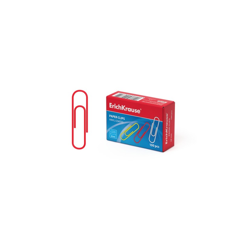 Clips con recubrimiento de plastico de colores ErichKrause®, 28mm (caja 100 uds). Clips recubiertos de vinilo hechos de alambre de acero de alta calidad con caracteristicas de resistencia mejoradas. Adecuado para uso multiple. Resistente a la corrosion. Papel sin manchas y sin aranazos.