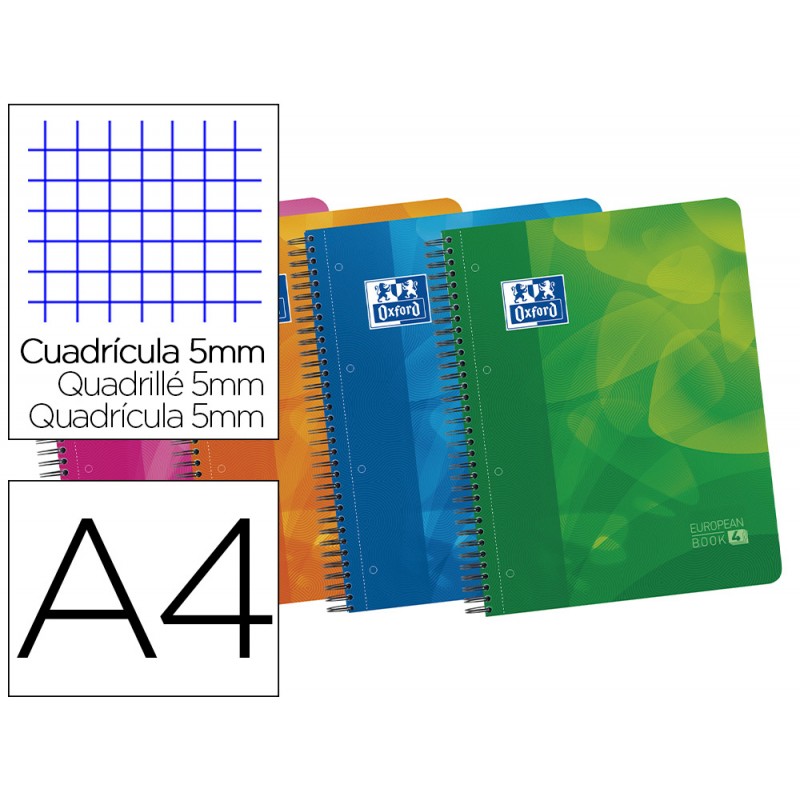 EUROPEANBOOK 4 LAGOON con separadores: cuaderno microperforado con tapa de plástico y 4 colores de recuadro en formato A4+ para poder clasificar los apuntes por color y/o utilizar un mismo cuaderno para varias asignaturas. 3 separadores extraíbles y bolsa portadocumentos.