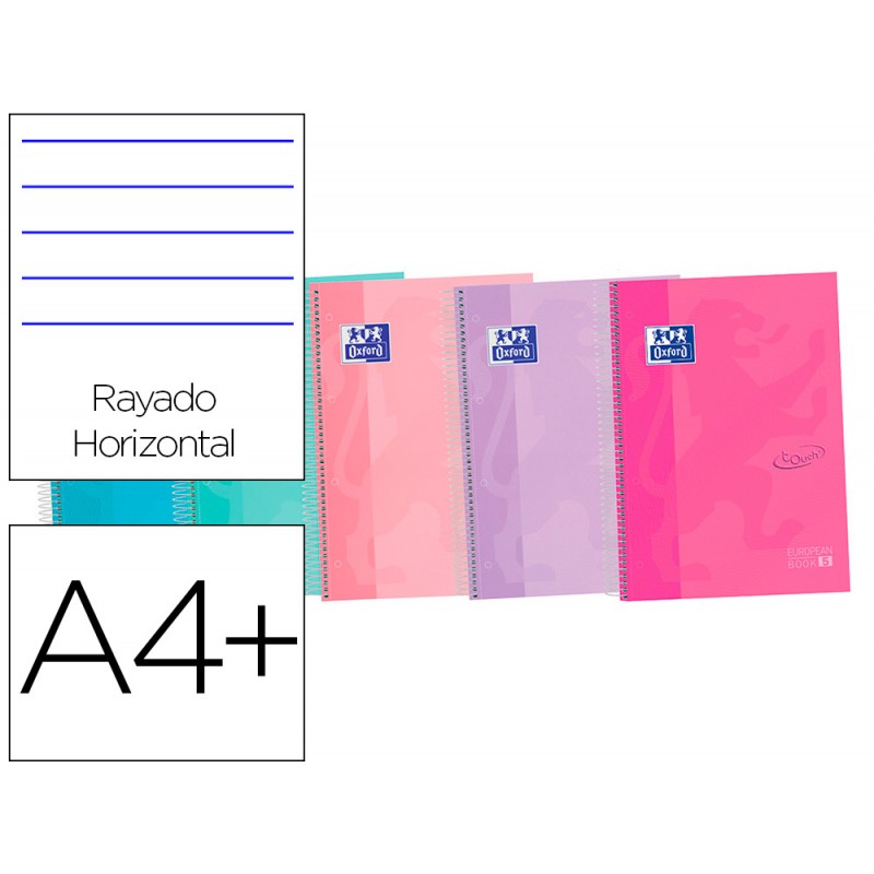 Tapa dura. 120 hojas. Papel de 90 g/m², extrablanco y satinado. Con un tacto suave y un acabado mate. OPTIK PAPER. Permite escribir por las dos caras. Microperforado. 5 colores de banda que permiten identificar rápidamente cada asignatura. Espiral simple a juego con el color de la tapa y el recuadro. Din A4+. Medidas: 29,7 x 23 cm. Colores surtidos.