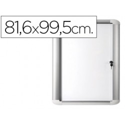 Vitrina de anuncios acristalada con marco de aluminio y superficie magnética de acero lacado. Cuerpo con sello de caucho y parte trasera de acero para evitar que entren polvo y agua. Puerta acrílica de vidrio reforzado de 4 mm de grosor. Solución extra fina y ultra ligera para visualizar información. Ideal para pasillos y lugares de trabajo. Cerradura de alta calidad con 2 llaves. Fondo de 3,5 cm.