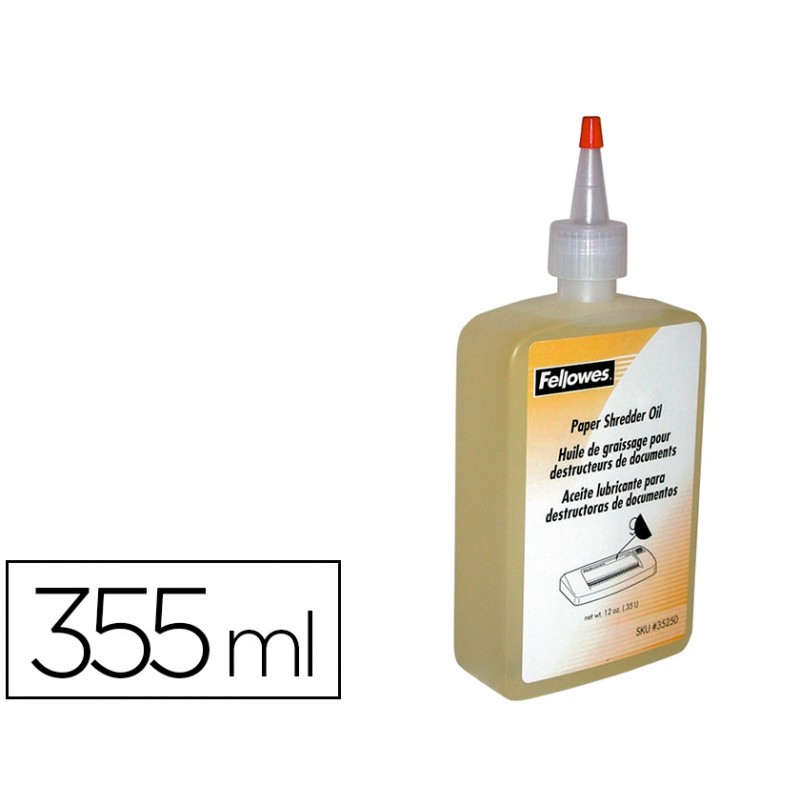- Aceite para destructoras Fellowes, para utilizar cada vez que se vacíe la papelera o dos veces mínimo al mes