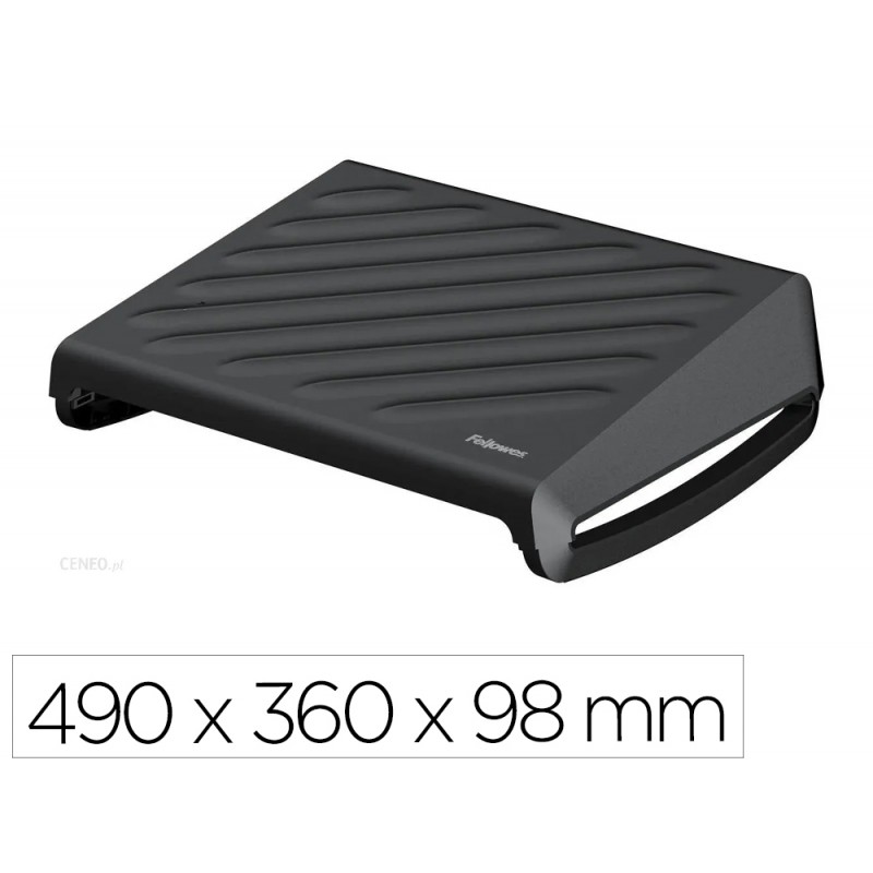 Reposapiés con 3 ajustes de altura, eleva las piernas y pies para aliviar la presión sobre la espalda. Gran plataforma de apoyo de 450x350 mm. Opción de balanceo para aumentar el movimiento de las piernas y favorecer la circulación. Fabricado con materiales 100 % reciclables y duraderos con una garantía extendida de 5 años. Dimensiones (An x Pro x Al): 490 x 360 x 98 mm. Peso 2,16 kg. Color negro.