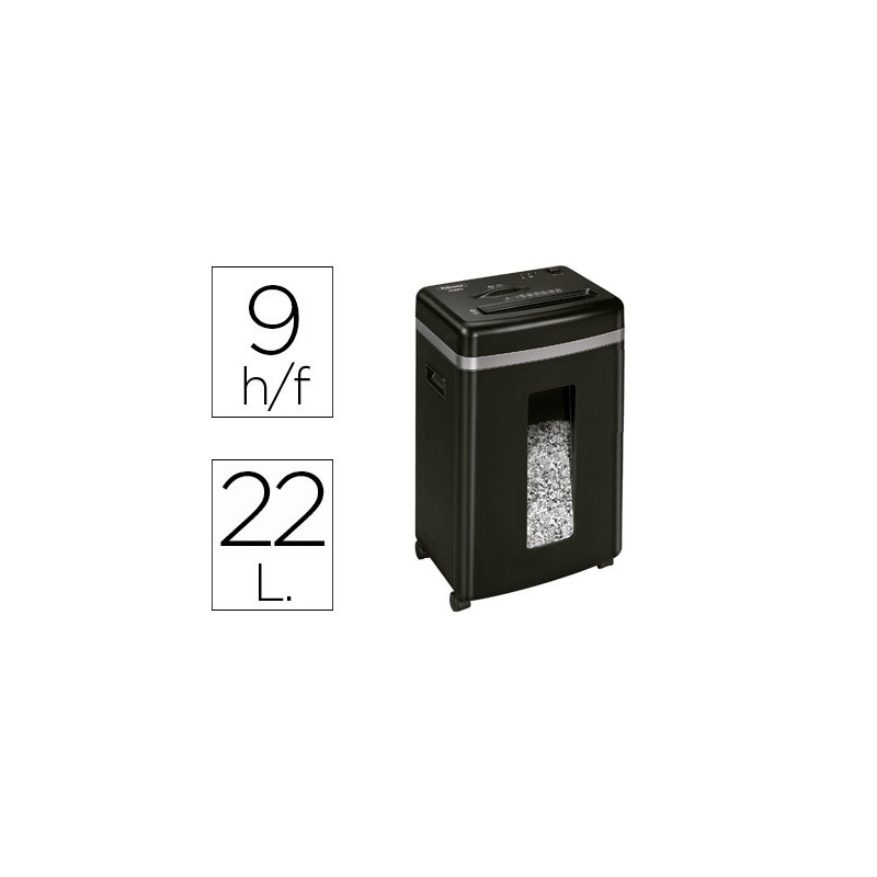 Fellowes Powershred 450M. Tipo de triturador de papel: Microcorte, Tamaño de trituración de papel: 2 x 12 mm, Capacidad de la cesta: 22 L. Dimensiones (Ancho x Profundidad x Altura): 350,8 x 260,4 x 565,2 mm. Peso: 10,4 kg, Ancho del paquete: 396,9 mm, Profundidad del paquete: 295,3 mm