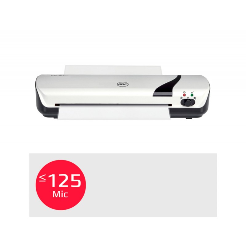 Plastificadora Inspire+ A4, ligera y compacta, para usuario doméstico y profesional ocasional con necesidades básicas. Ancho de entrada: 241 mm. Sistema 2 rodillos calientes. 4 minutos de precalentamiento. Velocidad 250 mm/min. Palanca de liberación de atascos. Admite hasta carteras 125 micras. Selector temperatura: frio / Caliente. Indicador led de enchufado (rojo) y máquina lista (verde). Admites carteras de plastificar tamaño A4 e inferiores. Bandeja de salida para acabado plano. Incluye started kit con una cizalla A4 para recortar plastico sobrante de las plastificaciones y papel (hasta 5 hojas a la vez) + accesorio para recortar y redondear esquinas de las fundas de plastificar + 5 carteras de plastificar de 75 micras. Tamaño 350 x 130 x 60 mm. Peso 1,39 kg. Color blanco .