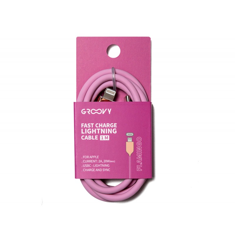 CABLE GROOVY USB 2.0 TIPO C A TIPO C LONGITUD 1 MT SILICONA COLOR ROSA FLAMENCO