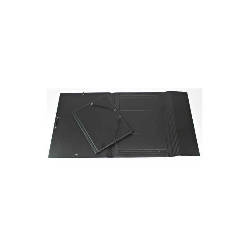 Carpeta de Tamaño CUARTO en plástico PVC (reciclable libre de ftalatos) 300 micras con cartón interior de 2 mm, con 3 solapas interiores con fuelle para aumentar capacidad, sistema de cierre doble con goma elástica. Carpeta clásica diferenciada por su gran resistencia al uso continuado.