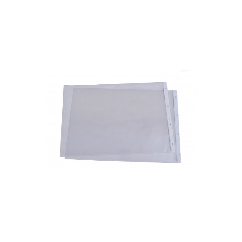 Funda 4 TALADROS APAISADA A3 (447 X 306 MM) fabricada en plástico 100 micras cristal (reciclable libre de Ftalatos) CON REFUERZO EXTRA EN LA ZONA DE TALADROS. Funda super resistente y transparencia cristal.