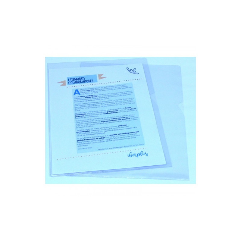 Dossier en tamaño folio de 300 micras PVC EXTRA cristal (reciclable, libre de ftalatos) soldadura en "L" con uñero en parte superior para facil estracción de documentos. Producto estrella por su capacidad de archivo y MÁXIMA RESITENCIA EN 300 MICRAS fácil visualicación de documentos a primera vista en plástico cristal transparente.