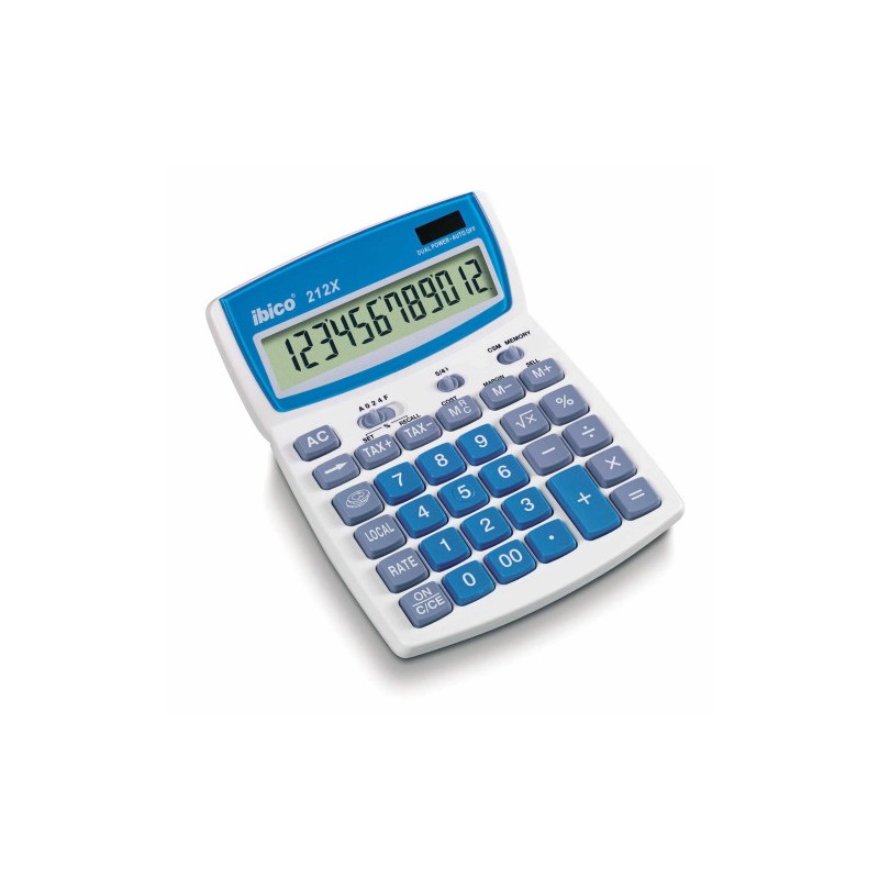 Con sus prácticas y grandes teclas, la calculadora Ibico 212X consigue el equilibrio perfecto entre un tamaño de pantalla visible y el espacio de mesa ocupado. Posee una pantalla LCD de 12 dígitos inclinable, teclas elevadas para agilizar la introducción de datos y funciones útiles +/- y de redondeo para finanzas, función coste, venta, margen. Dimensiones 190 x 140 x 32 mm.