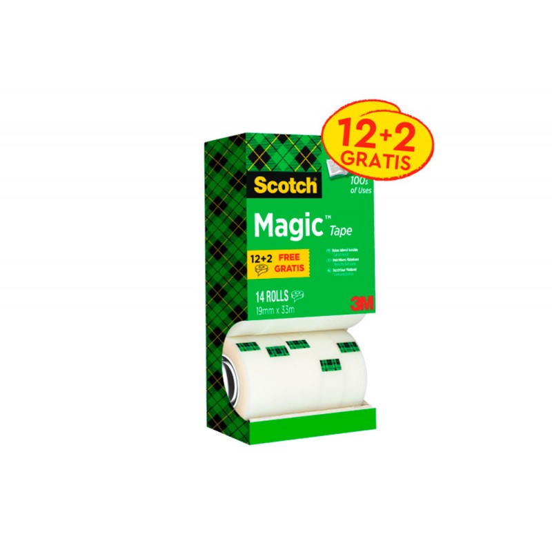 CINTA ADHESIVA INVISIBLE SCOTCH MAGIC 810 19 MM X 33 M PACK DE 14 ROLLOS CON DISPENSADOR DE CARTON