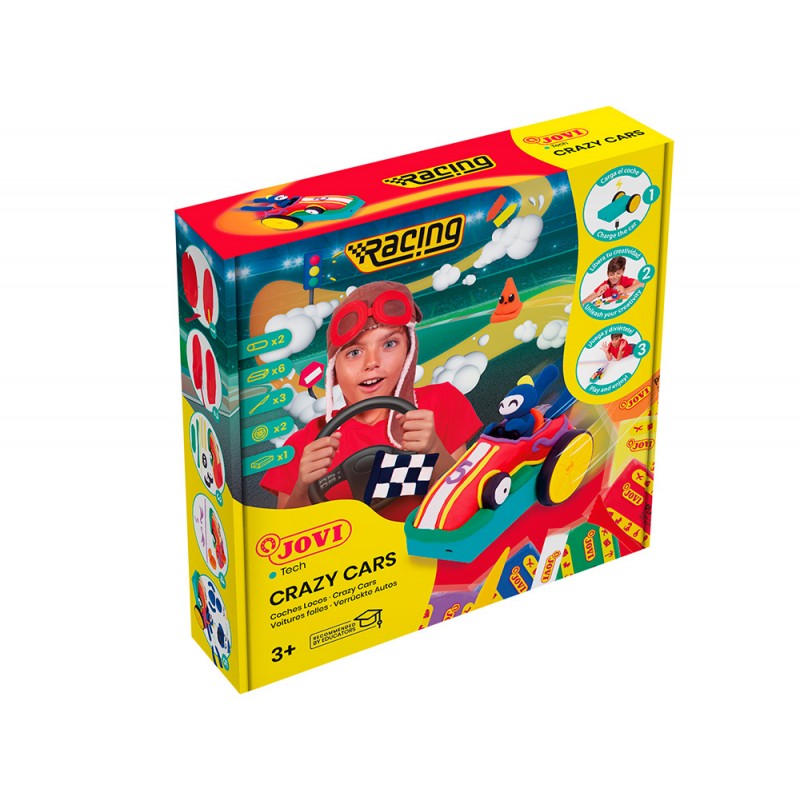 PLASTILINA JOVI CRAZY CARS FANTASY KIT SET CON 8 PASTILLAS DE PLASTILINA COLORES PASTEL DE 50G , 2 BARRITAS DE 15G, 3 MODELADORES, 2 RUEDAS CRAZY CARS, 1 PLATAFORMA