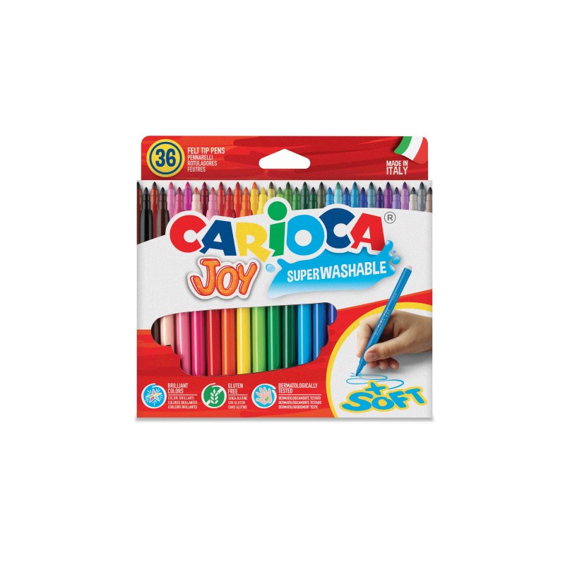 Carioca Joy. Tipo de punta: Fino, Colores de escritura: Multicolor, Tipo de punta: Punta redonda. Cantidad por paquete: 36 pieza(s), Tipo de embalaje: Caja de cartón. Ancho de la caja principal: 32,5 cm, Longitud de la caja: 40,5 cm, Alto de la caja principal: 31,5 cm