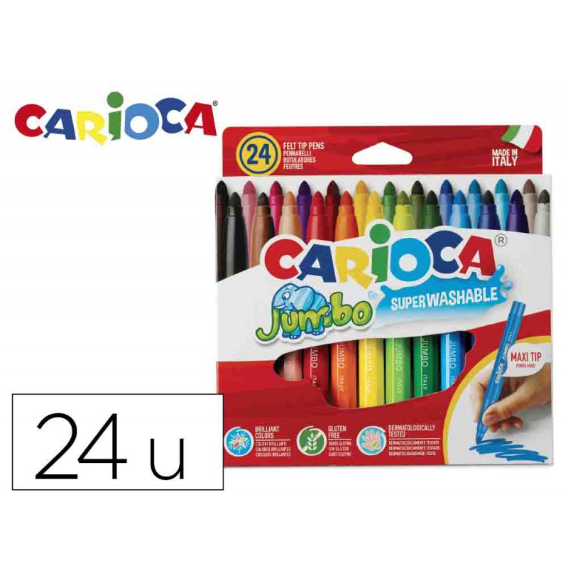 Carioca Jumbo. Tipo de punta: Extra-grueso, Colores de escritura: Multicolor, Tipo de punta: Punta redonda. Cantidad por paquete: 24 pieza(s), Tipo de embalaje: Caja de cartón. Ancho de la caja principal: 33 cm, Longitud de la caja: 38 cm, Alto de la caja principal: 24,5 cm