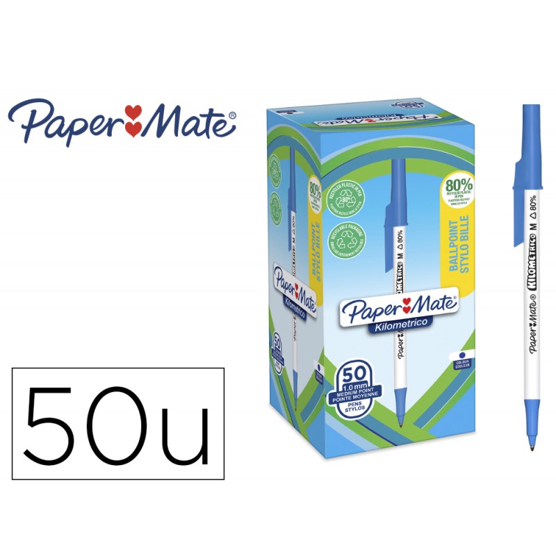 BOLIGRAFO TINTA DE ACEITE PAPERMATE KILOMETRICO AZUL RECICLADO 80 % PUNTA DE 1 MM CAJA DE 50 UDS