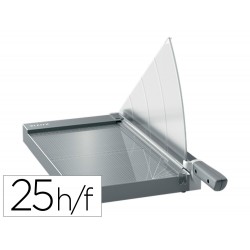 La guillotina de papel Leitz Precision Office Pro A4+ es perfecta para el uso general en la oficina para cortar papel, etiquetas, películas, fotos, hojas plastificadas, tarjetas y cartón de montaje. Esta potente y robusta guillotina de papel comercial cortará sin esfuerzo hasta 25 hojas de papel A4 (80grs) con velocidad y precisión. Cuenta con la exclusiva tecnología de luz EdgeGlow que ilumina el filo de corte para una mayor visibilidad y máxima precisión. La abrazadera de papel manual y transparente mantiene el papel seguro, mientras que el mango ergonómico garantiza un corte cómodo y fácil. Es rápido y fácil alinear el papel con las sencillas directrices en la superficie de trabajo lisa y de cristal. El seguro de la hoja de corte ofrece una protección total y el pestillo de seguridad mantiene la hoja de corte bloqueada mientras no se utiliza. Con una cuchilla de acero inoxidable de alta calidad, una superficie de trabajo resistente y una garantía ampliada de 5 años, tendrás la tranquilidad de que esta guillotina A4+ te proporcionará un corte preciso durante muchos años.