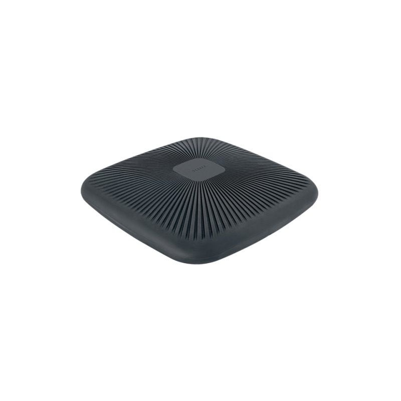 Cojín Wobble Active Leitz Ergo. Diseñado para su uso en cualquier silla. Cojín de asiento hinchable, que ayuda a fortalecer la espalda creando micromovimientos para mantener el equilibrio mientras se está sentado. Certificación IGR. Mejorará la circulación sanguínea y alivia la presión sobre la columna vertebral, reduciendo las molestias causadas por periodos prolongados de sedentarismo o por problemas de salud como la ciática. Forma cuadrada y superficie de asiento ampliada en comparación con los cojines redondos estándar. Diseño minimalista. Combínable con otros productos Leitz Ergo para crear un espacio de trabajo atractivo y agradable. Color gris oscuro.