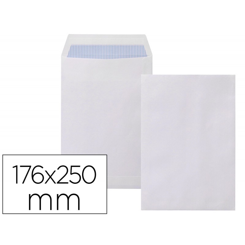 BOLSA DIN B5 176 X 250 MM LIDERPAPEL OFFSET BLANCO 100 GRS TIRA DE SILICONA CAJA DE 500 UDS